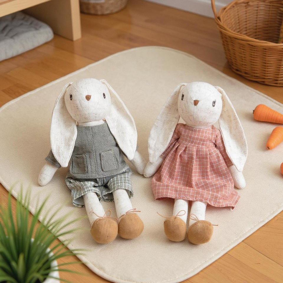 Muñeco de Conejo de Pascua Personalizado de Lino Suave con Orejas Largas, Peluche Bailarina con Vestido, Juguete de Animal para Niñas