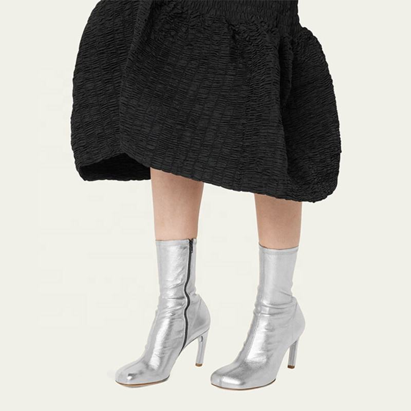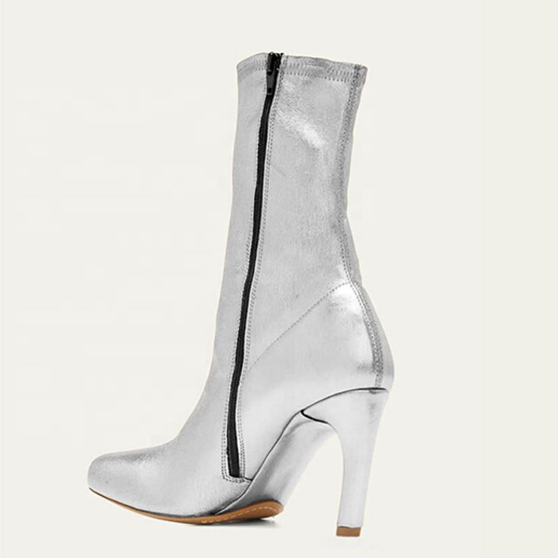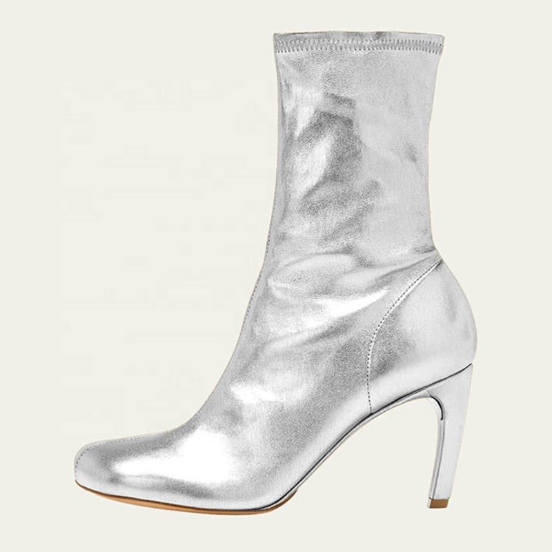 Botines Personalizados de Oro Sólido para Mujer, con Punta Cuadrada, Cierre Lateral, Tacón Alto y Delgado