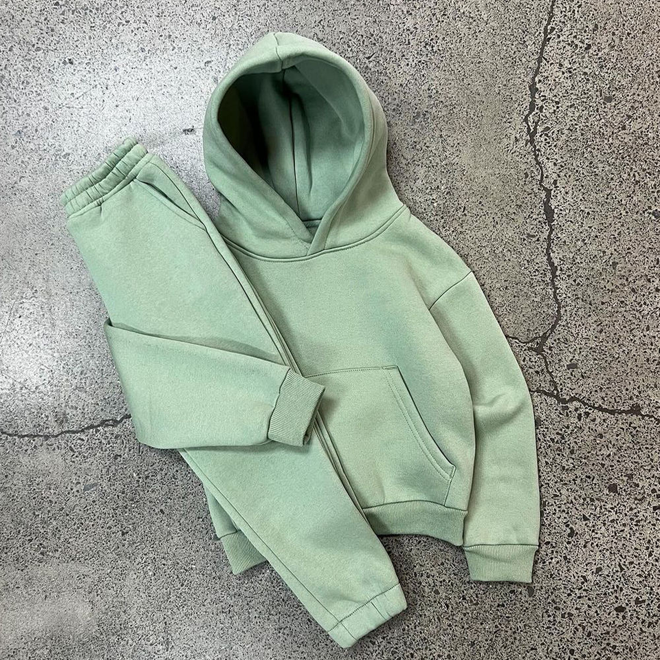 Conjunto de Dos Piezas para Niños con Patrón Sólido Personalizado, Sudadera con Capucha y Pantalones Deportivos de Felpa Transpirable, Ropa de Invierno Informal, Sudadera Combinable