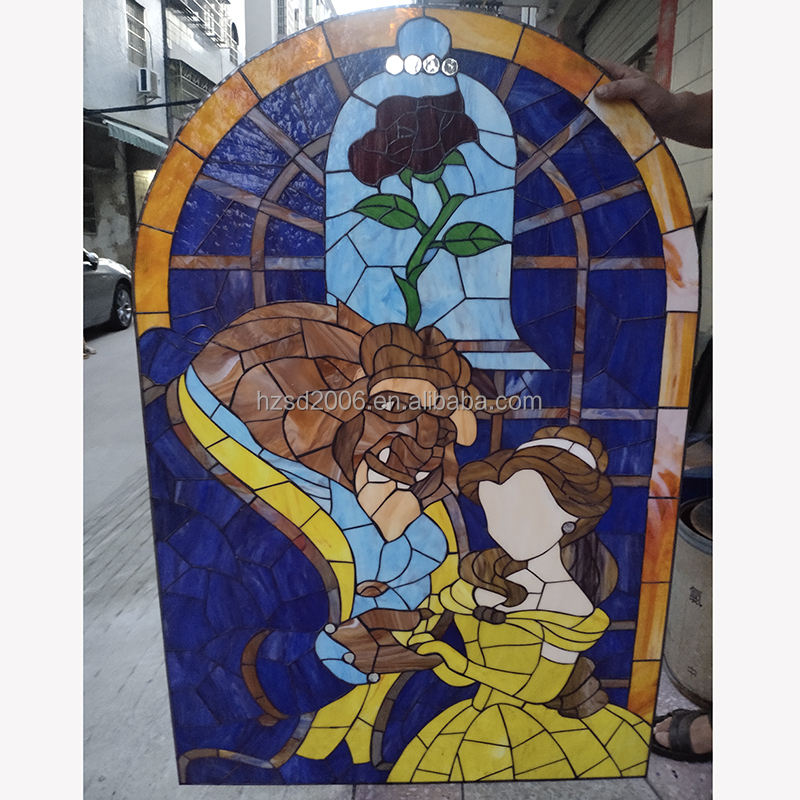 Muro Cortina de Vidrio Tintado de 5mm de Espesor, Estilo Europeo, Hecho a Mano, de Doble Cara, con Diseño de Bella y Bestia, Estructura Sólida Personalizada