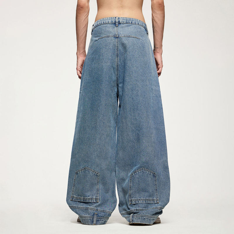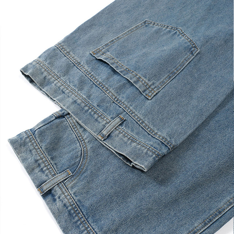 Vaqueros anchos de mezclilla lavados personalizados para hombre, estilo hip hop, corte holgado, cintura elástica, ropa casual urbana, tallas grandes