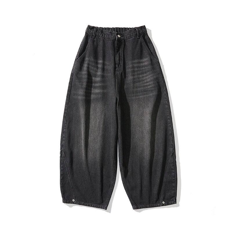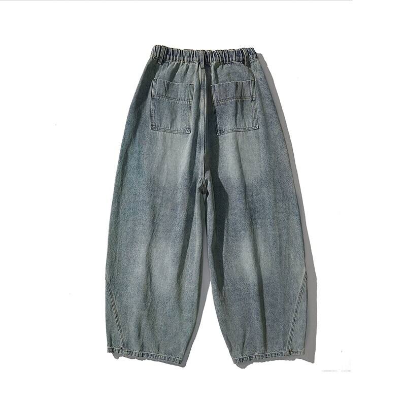 Vaqueros anchos de mezclilla lavados personalizados para hombre, estilo hip hop, corte holgado, cintura elástica, ropa casual urbana, tallas grandes