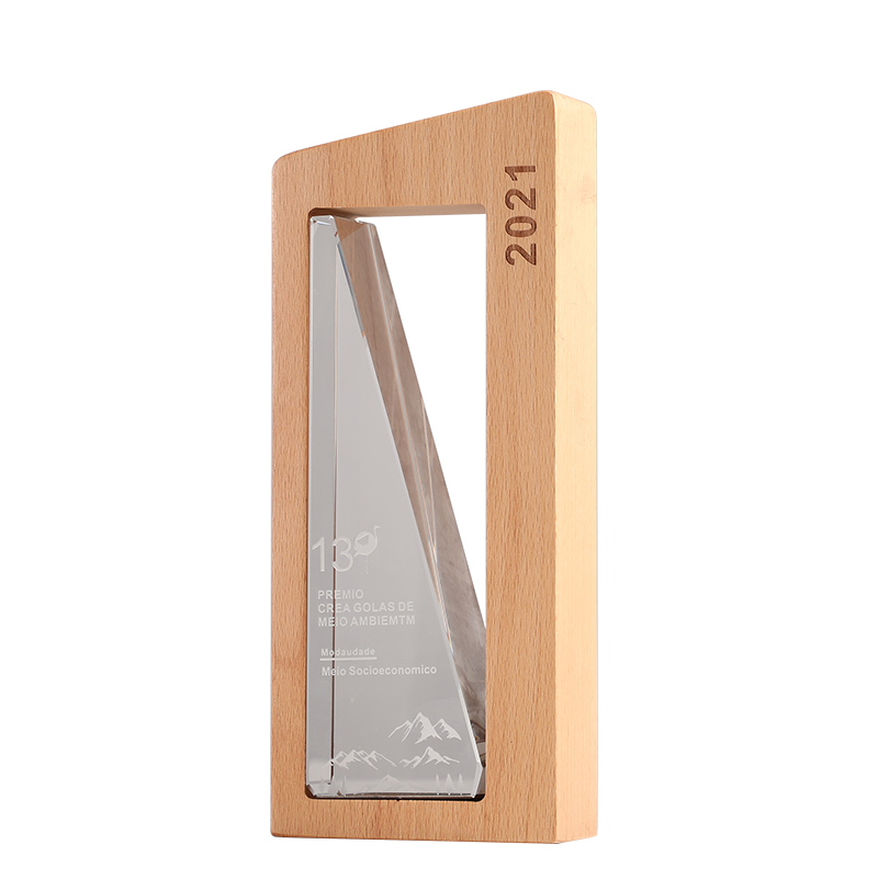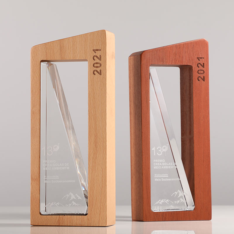 Trofeo de Madera Maciza Personalizado con Interior de Cristal Tallado, Premio Inmobiliario Creativo con Grabado de Montaña para Presentación