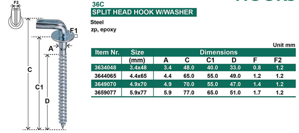 Gancho de cabeza dividida personalizado con arandela Ganchos de tornillo en forma de L