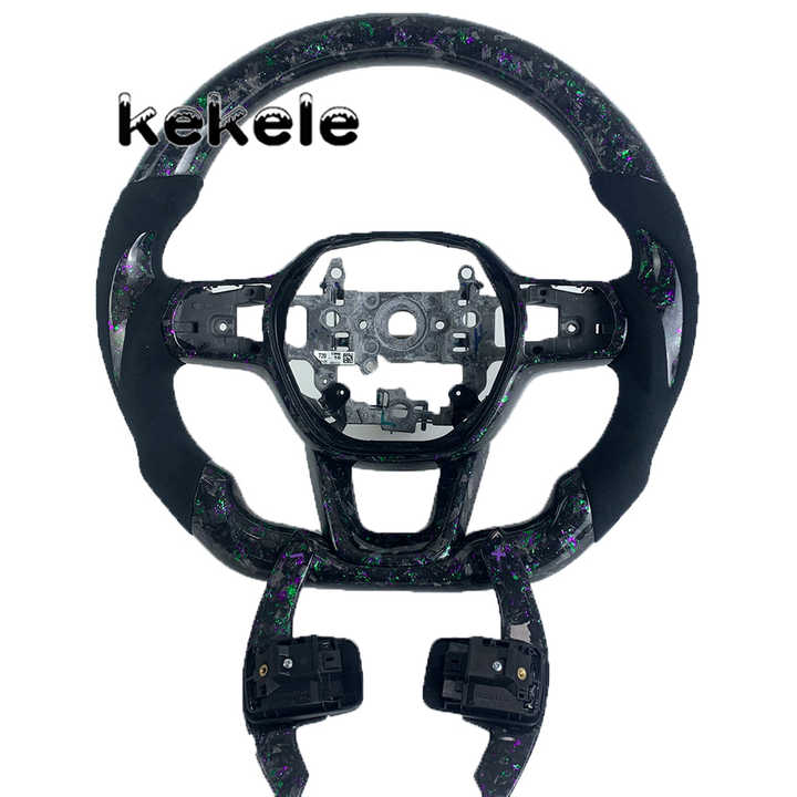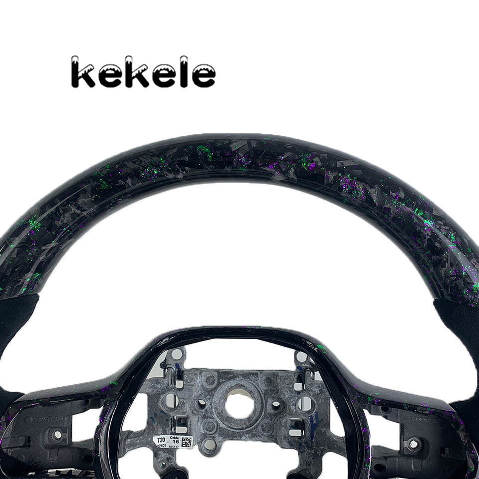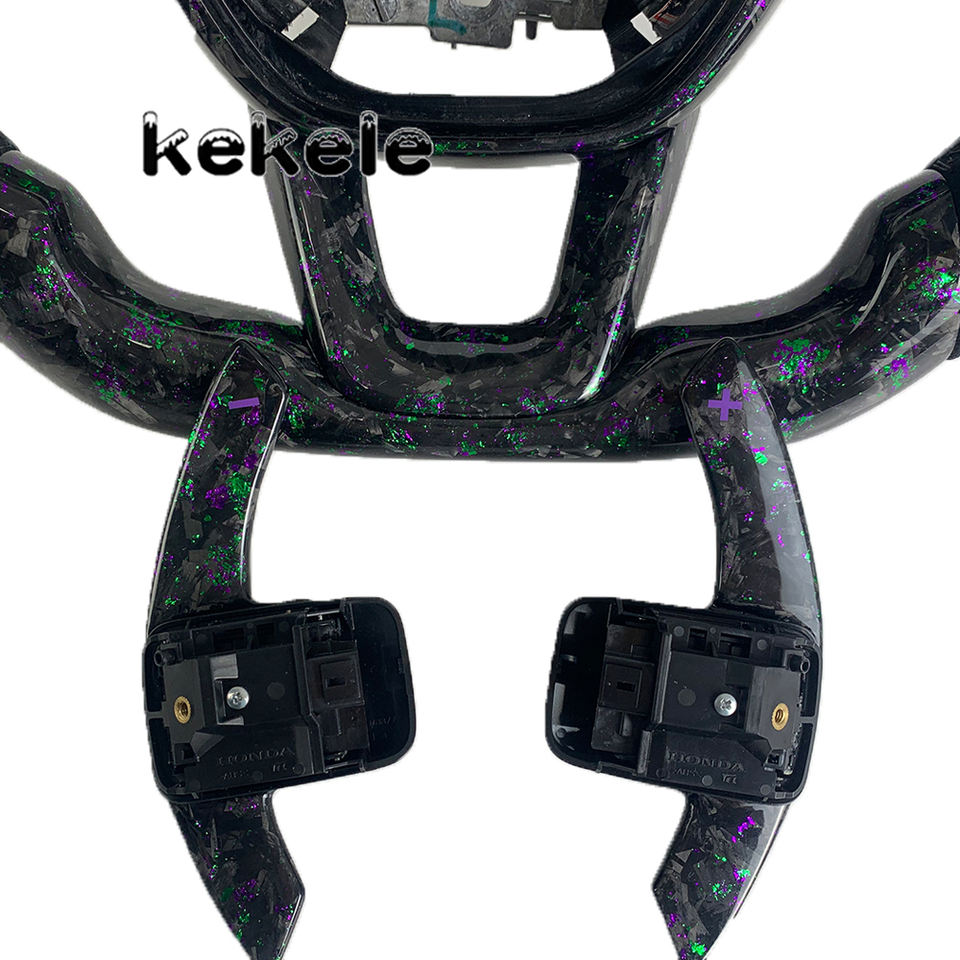 Volante Deportivo Personalizado con LED RPM, Color Morado y Verde, de Fibra de Carbono Forjada, para Honda Civic Accord 2021 2022 2023 2024