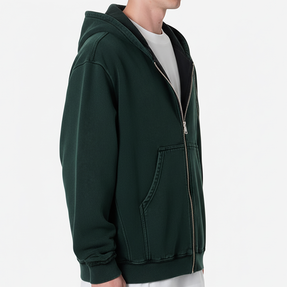 Sudadera con Capucha de Invierno Personalizada, Lavada con Spray, 100% Algodón, Gruesa, 450GSM, con Cremallera y Logotipo Personalizado Serigrafiado para Hombre