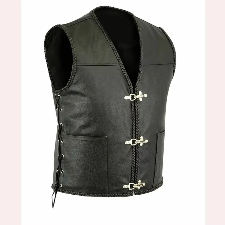 Chaleco de Motocicleta Personalizado de Primavera para Hombre y Mujer, Cuero Genuino, Decoración con Botones, Impresión de Logotipo Informal, Impermeable, de Lana, Tallas Grandes