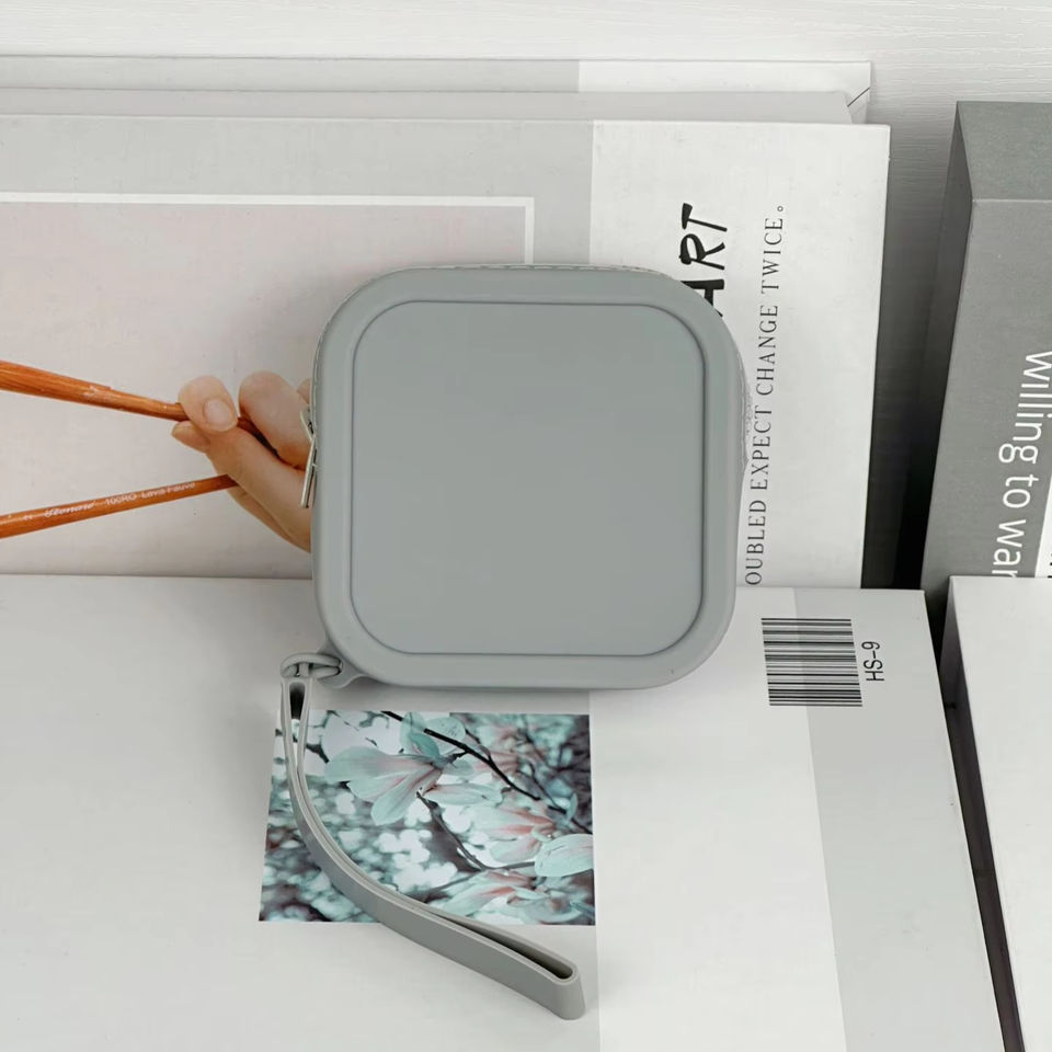 Monedero de silicona cuadrado ligero y personalizado, mini bolsa para auriculares con cremallera, ideal para viajes y compras.