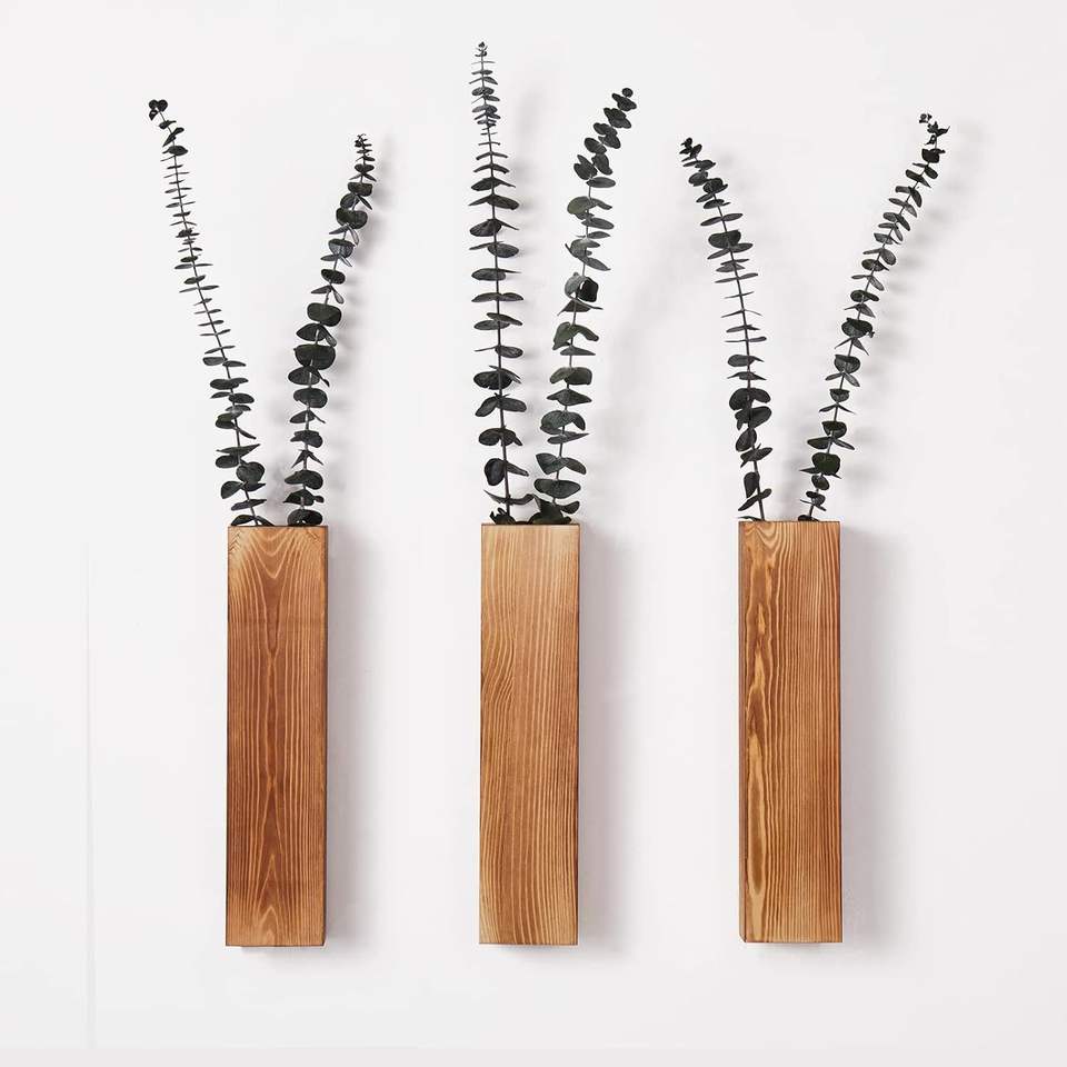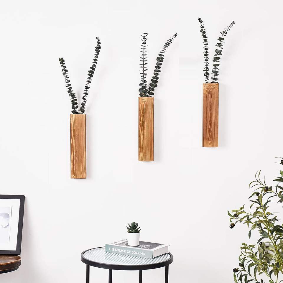 Maceta de pared de madera cuadrada personalizada, paquete de 3 decoraciones de pared para plantas de flores artificiales, jarrón de pared marrón oscuro Vintage para sala de estar