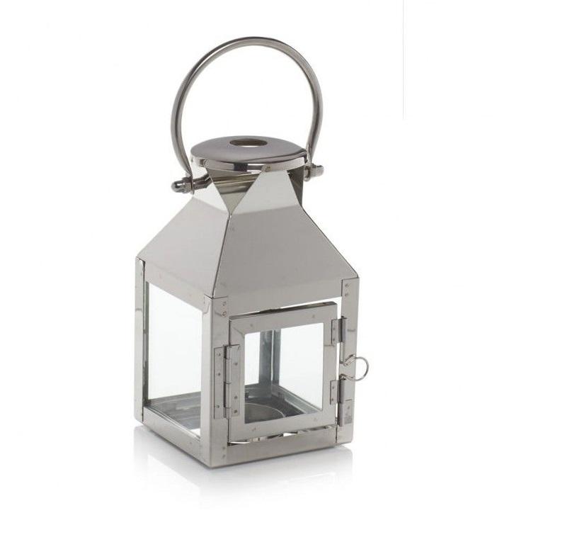 Farol de Vela Personalizado de Acero Inoxidable, Portátil, Duradero, Clásico, de Metal y Vidrio con Acabado Gris para el Hogar
