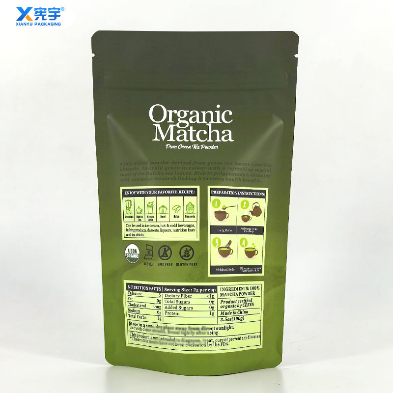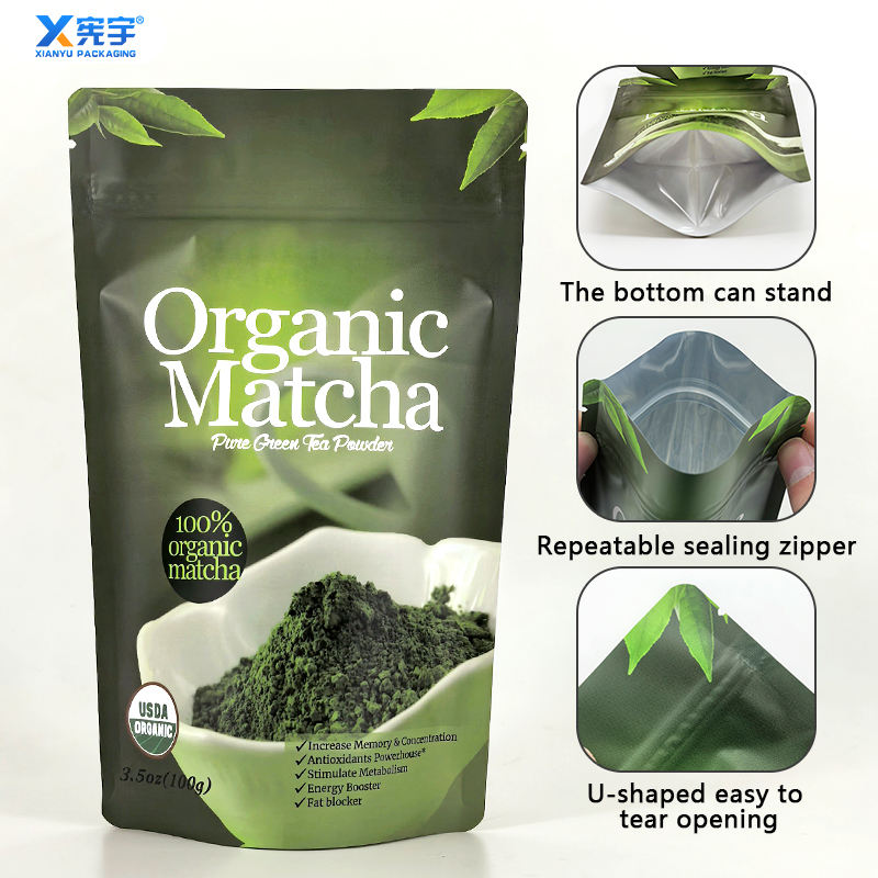 Bolsa de Embalaje de Alimentos Personalizada, Reutilizable, Sellada, con Cierre de Plástico, Antiolor, para Polvo de Matcha y Té