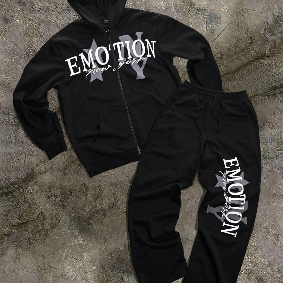 Conjunto Deportivo Personalizado de Dos Piezas con Letras Simples Estampadas Digitalmente, 100% Poliéster de Secado Rápido para Hombre, Otoño