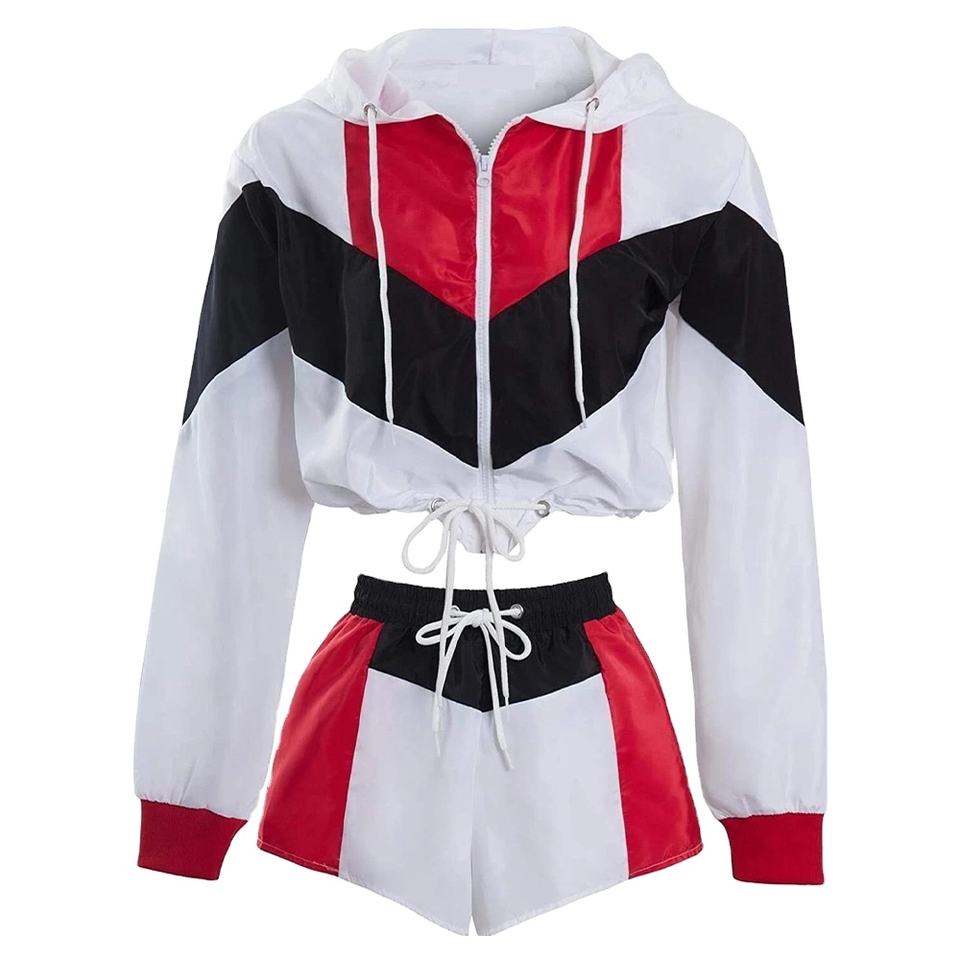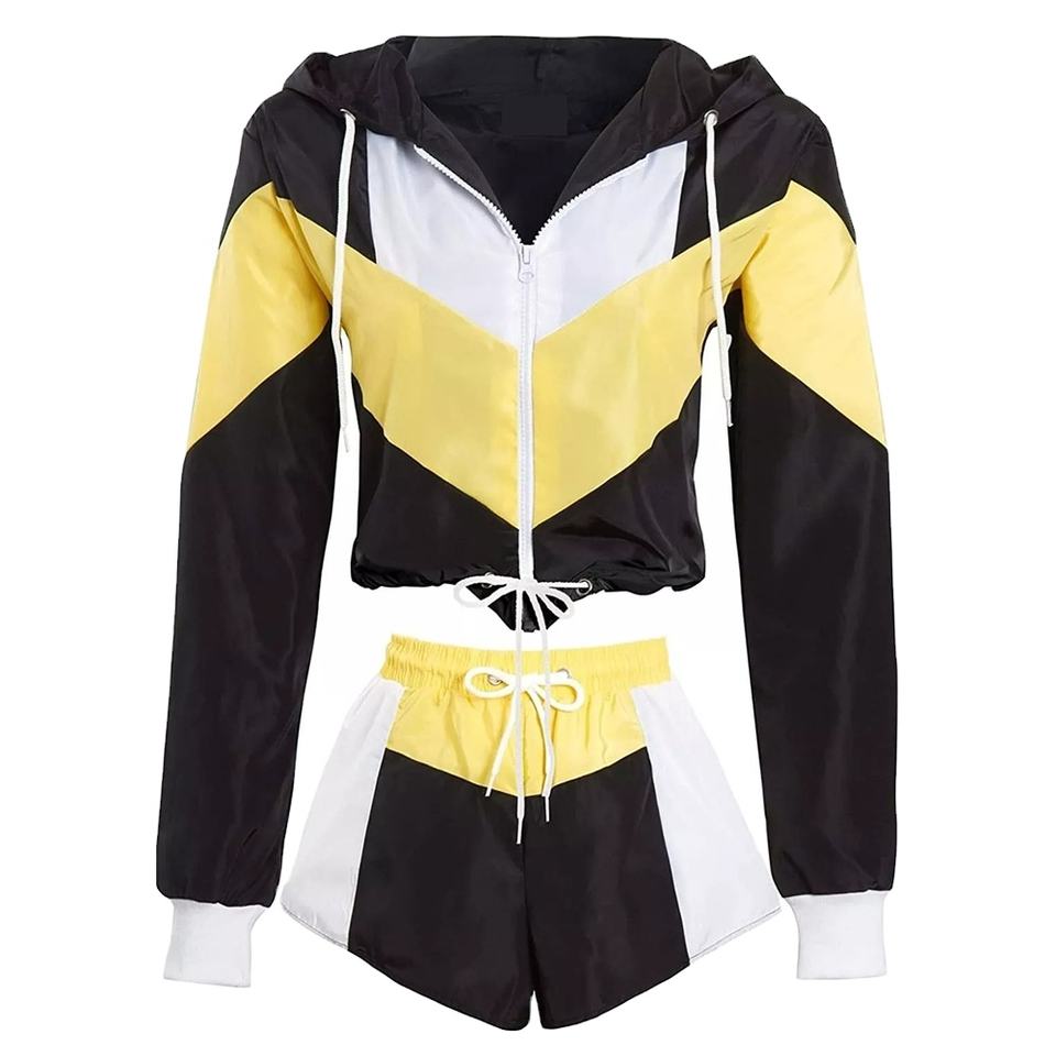 Conjunto Corto de Verano Personalizado para Mujer, Talla XS, Diseño Color Block Lavado, Estampado Sólido, Corto, Estilo Casual, Chaqueta Cortavientos, 2026