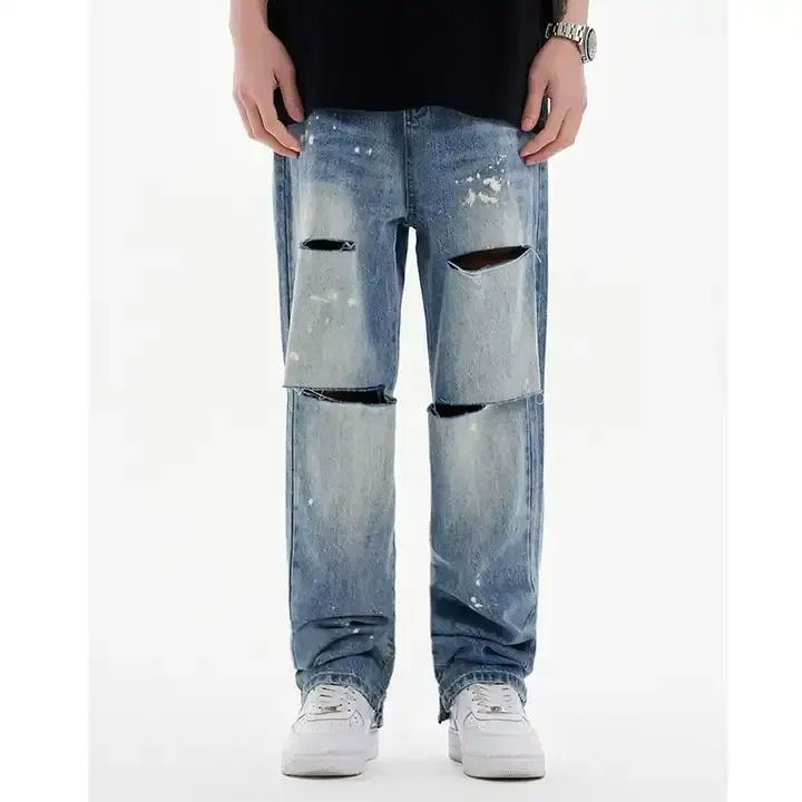 Pantalones Vaqueros de Mezclilla Estilo Baggy Desgastados con Efecto Descolorido por el Sol, Unisex, Ligeros, de Cintura Media, de Alta Calidad
