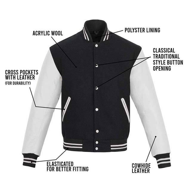 Chaqueta Universitaria Personalizada de Cuero Negro de Excelente Calidad a Precio Económico, Chaqueta Universitaria de Alta Calidad en Color Brillante para Hombre
