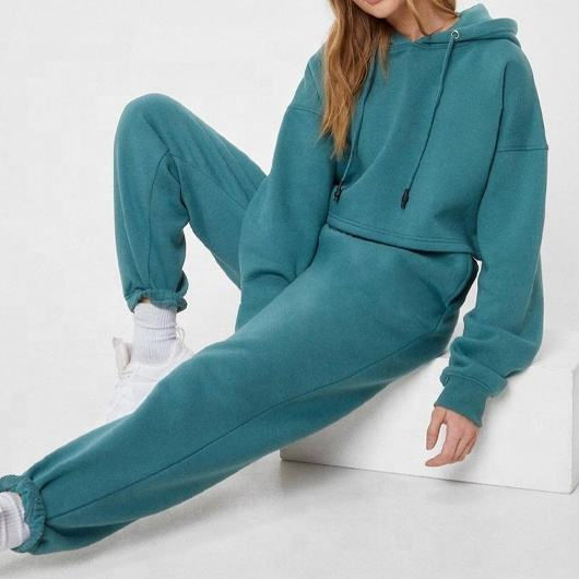 Chándal personalizado de alta calidad para correr, chándal apilado para mujer, Sudadera con capucha informal Vintage y pantalones rectos, conjunto de 2 piezas