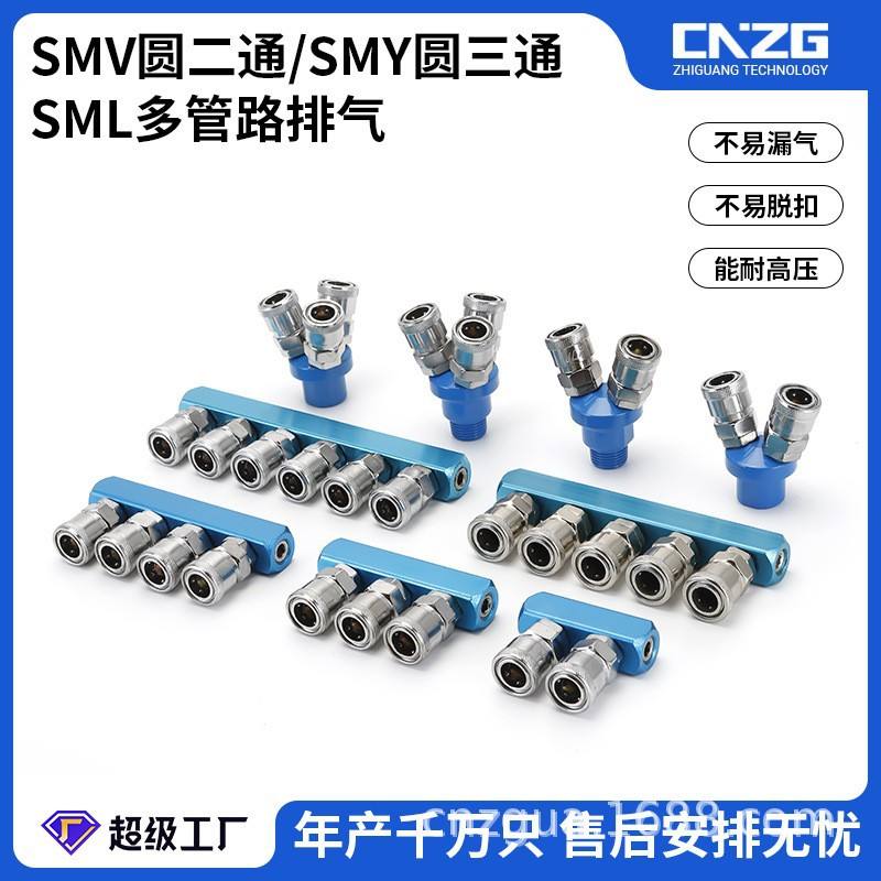 Conector Rápido Tipo C en T Personalizado SMYSMV, Conector Rápido Recto de 4 Puntos con Rosca Interna y Externa, Piezas Neumáticas