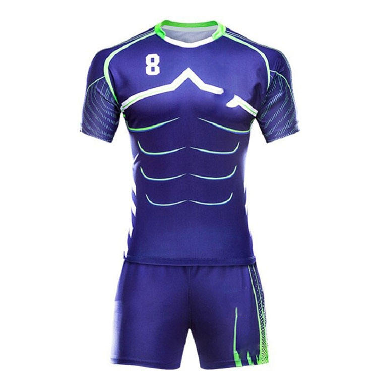Uniforme de Rugby personalizado de manga corta con cuello redondo y transpirable con estampado de nombre de equipo, sublimación personalizada rápida de alta calidad