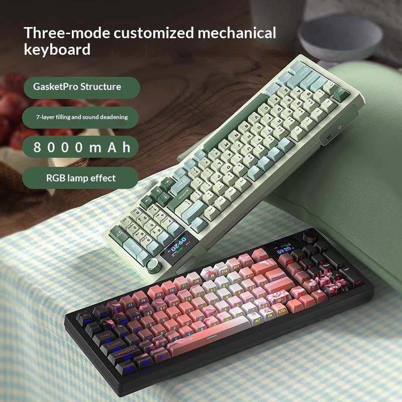 Teclado Mecánico Personalizado de Tres Modos para Juegos, Deportes Electrónicos, Intercambiable en Caliente, Inalámbrico Bluetooth para Oficina y Computadora