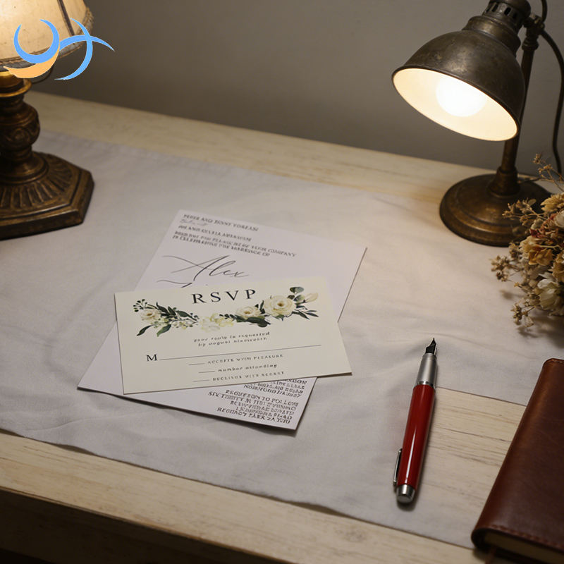 Invitación de Boda Floral Atemporal Personalizada y Juego de Tarjetas de Confirmación, Tarjetas de Felicitación de Papel de Algodón con Impresión Offset