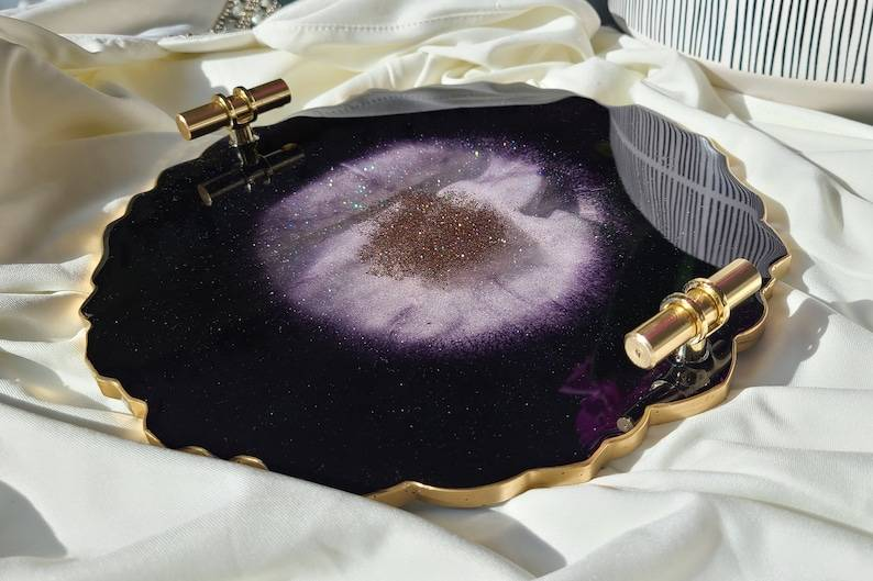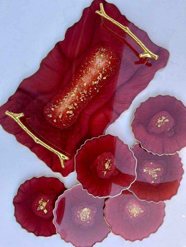 Juego de Bandeja y Posavasos Decorativos de Resina de Diseño Artesanal de Alta Calidad Personalizados para el Hogar y Restaurantes de la India