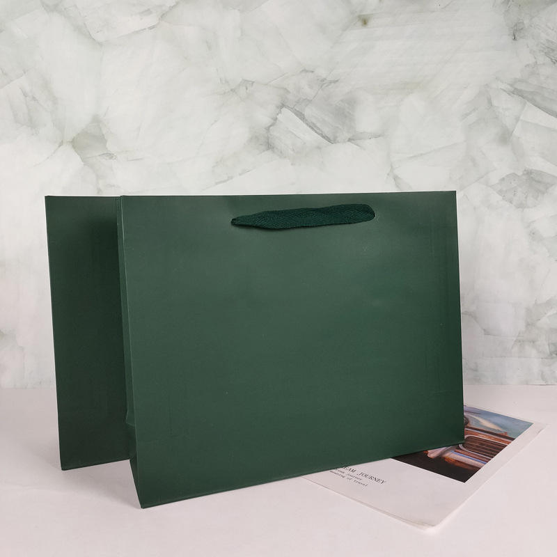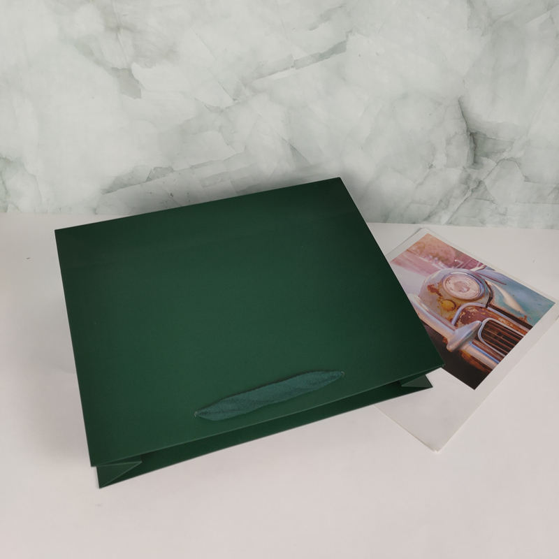 Bolsas de Papel Personalizadas de Alta Calidad, Bolsas de Regalo Verdes con Asa de Listón, Bolsa de Compras con Logotipo Personalizado, Bolsa de Compras Ecológica de Algodón