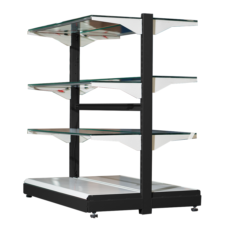 Estantería de doble cara de vidrio transparente personalizada, estantería de luces LED, estantería de supermercado para góndola, ADONG, A08