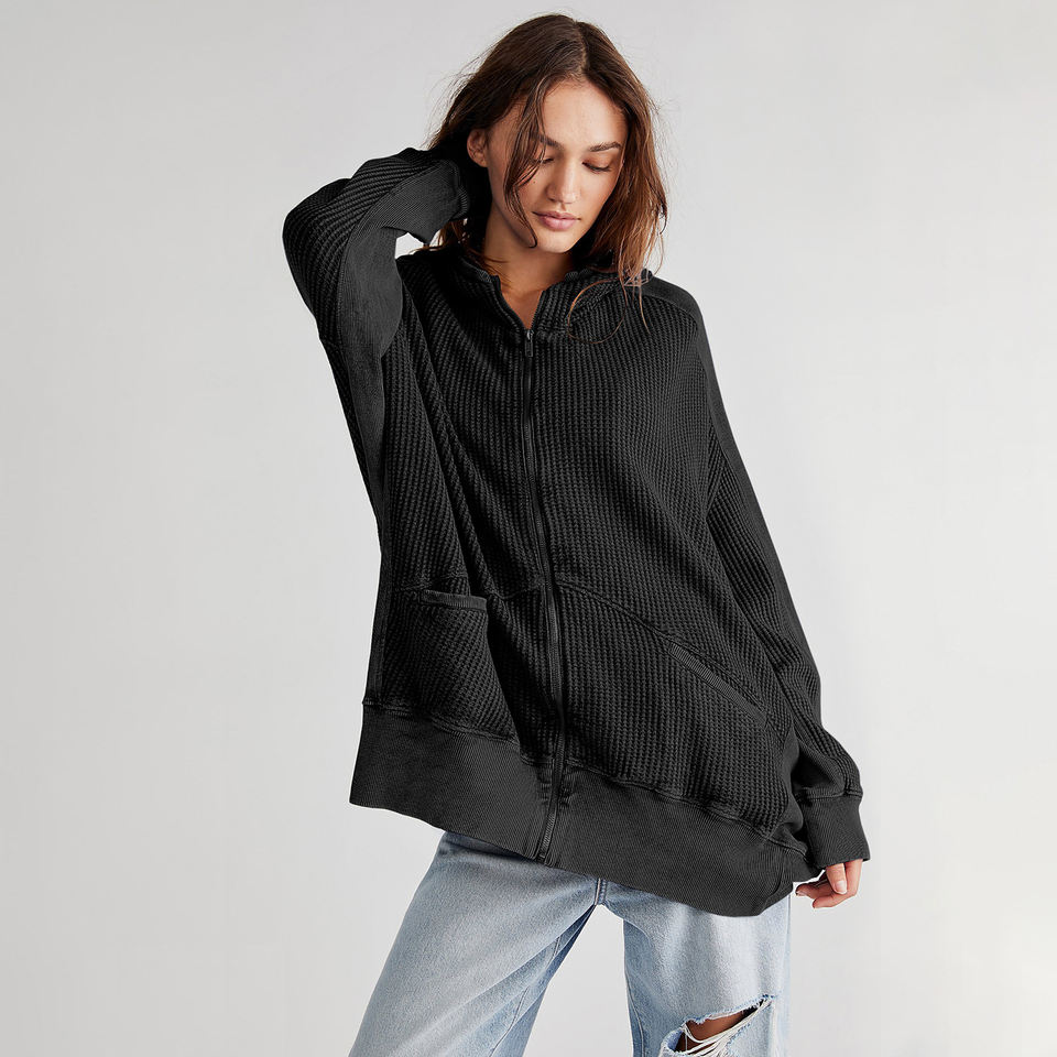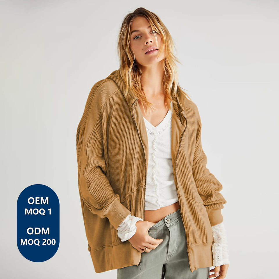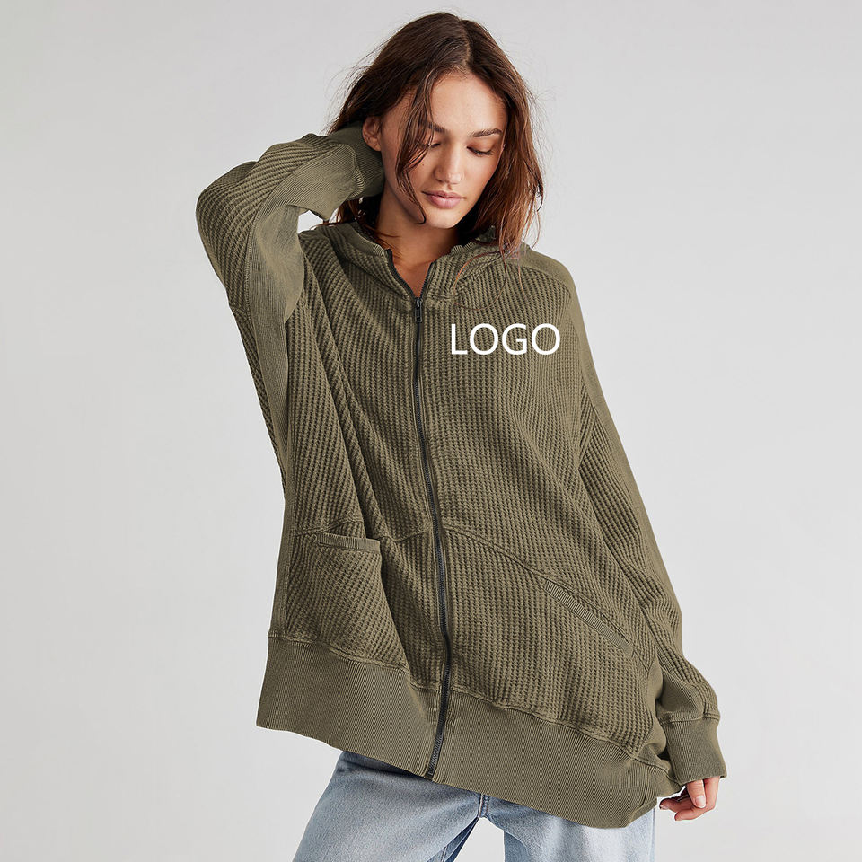 Chaqueta de punto holgada con cremallera para mujer personalizada, color liso, versátil, a la moda, top de yoga informal