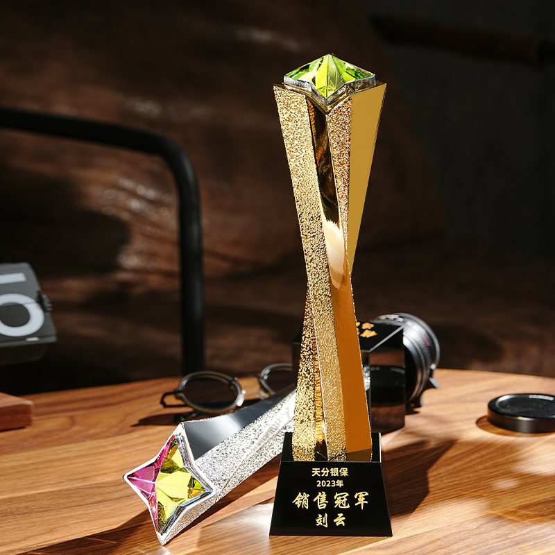 Trofeo Personalizado con Diseño Creativo de Estrella Dorada y Colorida para Premios Anuales a Empleados Campeones de Ventas