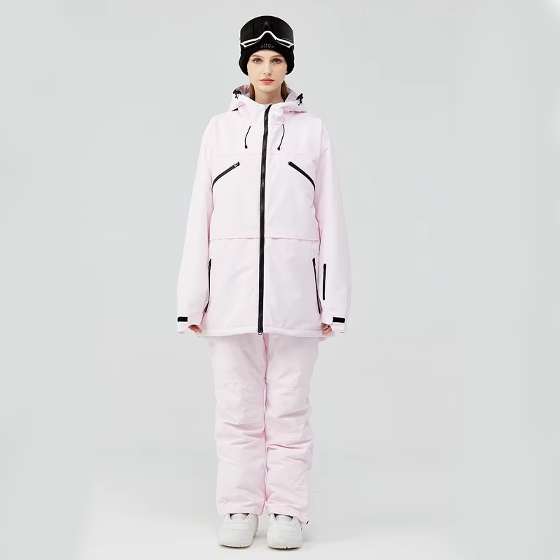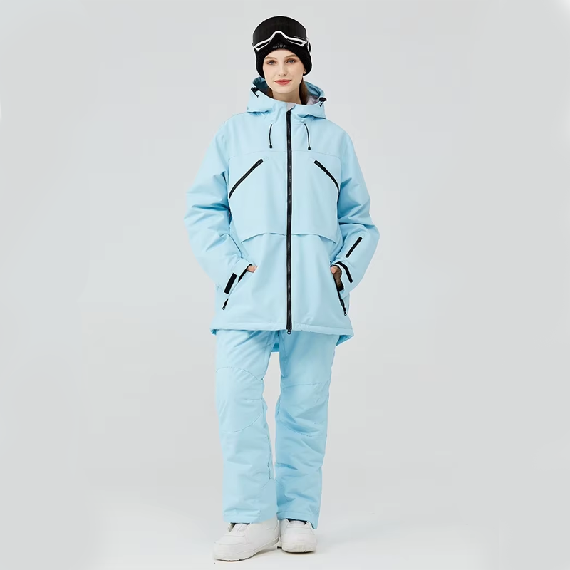 Trajes de esquí transpirables de dos piezas personalizados, pantalones con tirantes a prueba de viento y chaqueta de Snowboard para hombres y mujeres, pantalones con pechera de esquí de talla grande