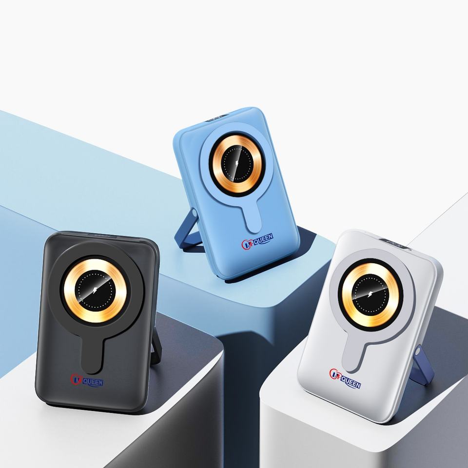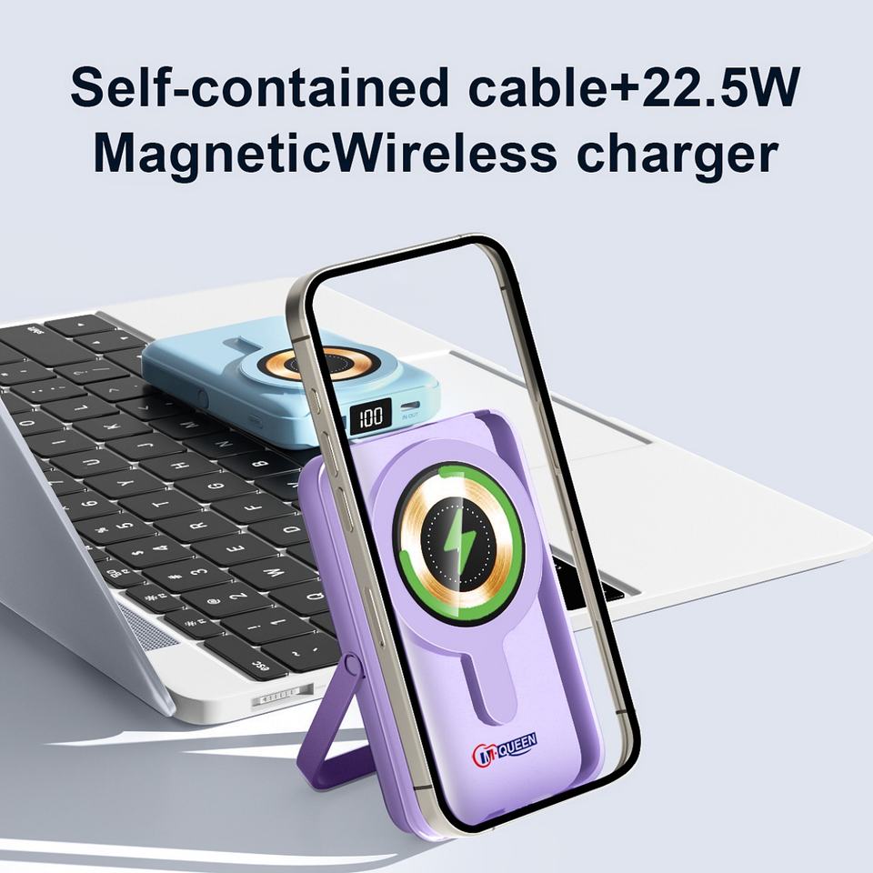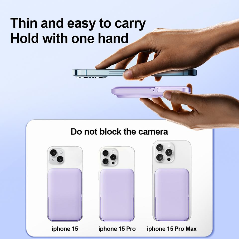 Batería Externa Magnética Inalámbrica Ultra Delgada de Metal Personalizada de 10000 mAh con Soporte, Cargador Inalámbrico para iPhone 12 13 14 15