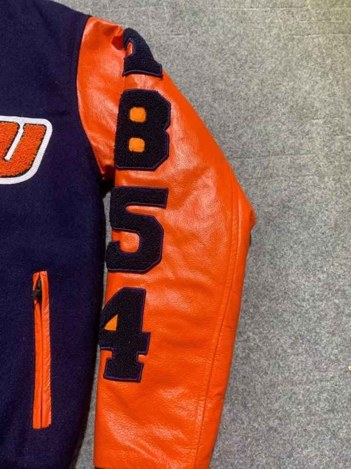 Chaqueta Varsity personalizada para hombre 100% de lana con bordado de chenilla con manga de cuero al por mayor