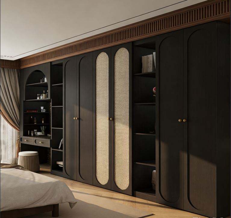 Sistema de Vestidor Personalizado para Villa, Armario de Lujo con Cubierta de Mármol, Puerta de Vidrio Antihuellas y Tira de LED