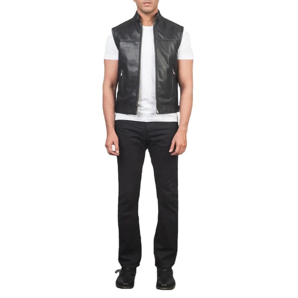 Chaqueta de cuero acolchada vintage personalizada Abrigo de invierno elegante con diseño sin cuello para motociclismo de hombres