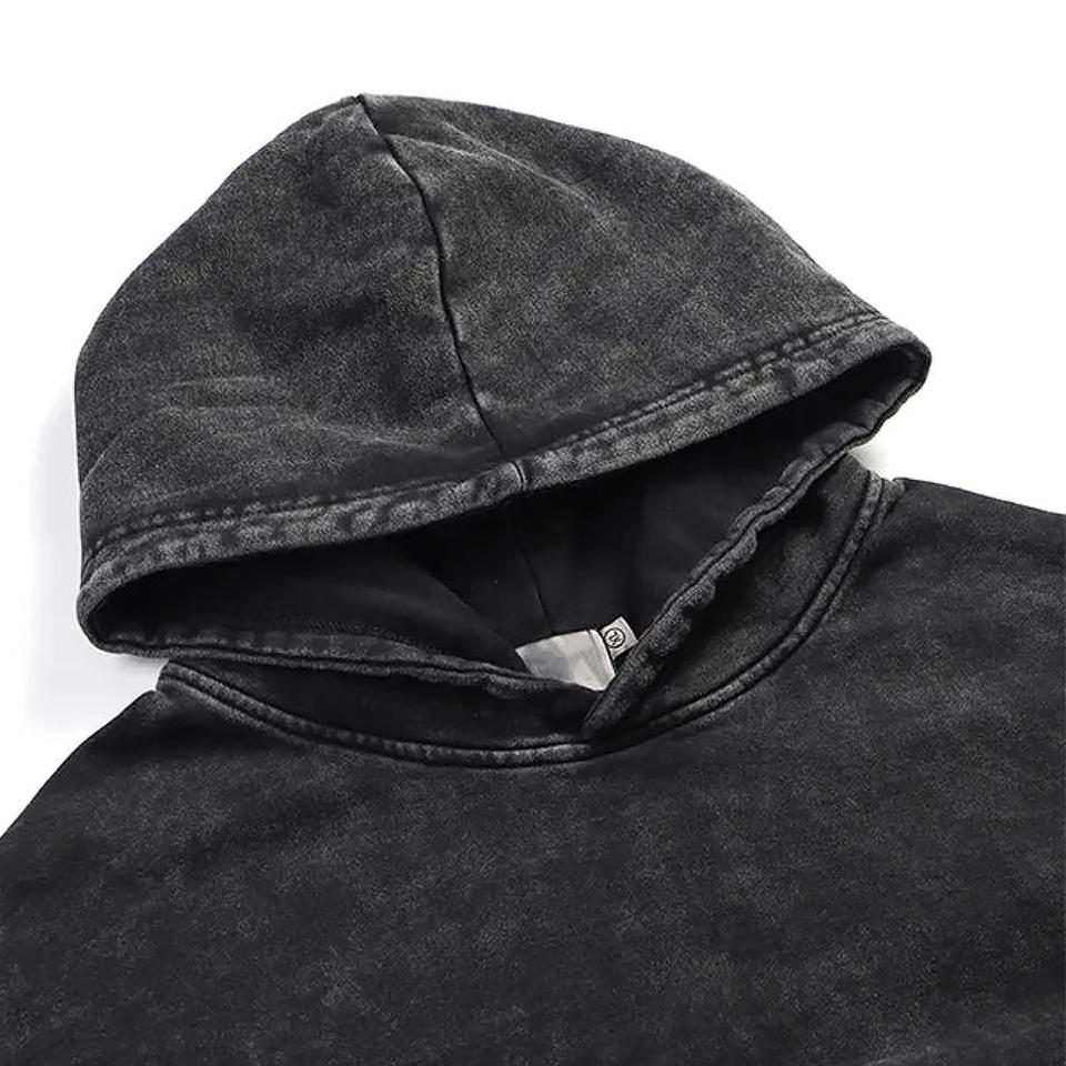 Sudadera Vintage Personalizada con Capucha Patrón Sólido Lavado con Ácido Lavado de Piedra de Invierno Detalle de Cremallera Precio Al por Mayor Sólido