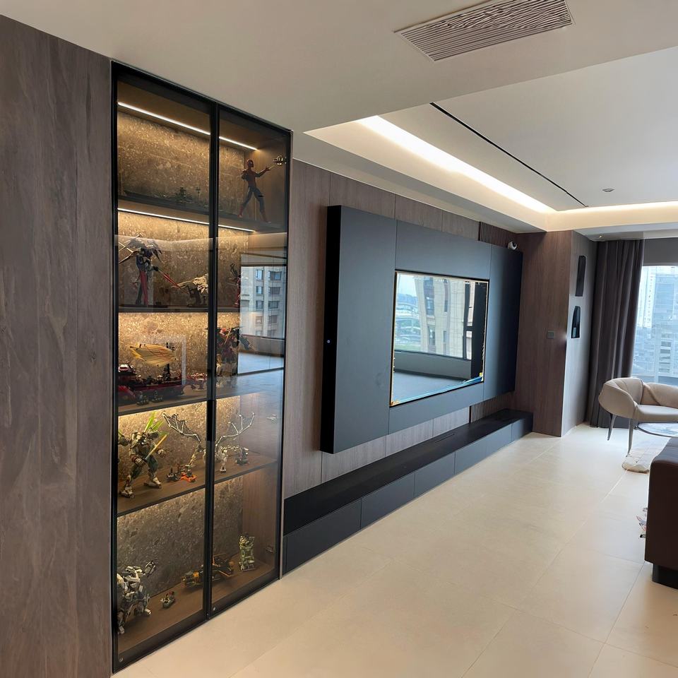 Gabinete de soporte de TV moderno montado en la pared personalizado con muebles de madera de elevación para el hogar Estilo nórdico