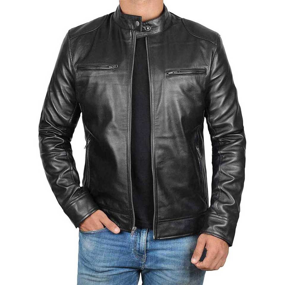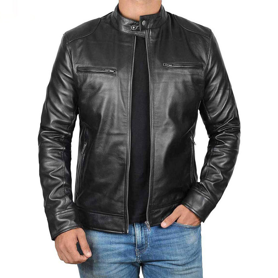 Chaquetas de Cuero PU Cortas Lavables Personalizadas para Hombre, Chaquetas de Cuero Ajustadas con Cuello Alto para Hombre