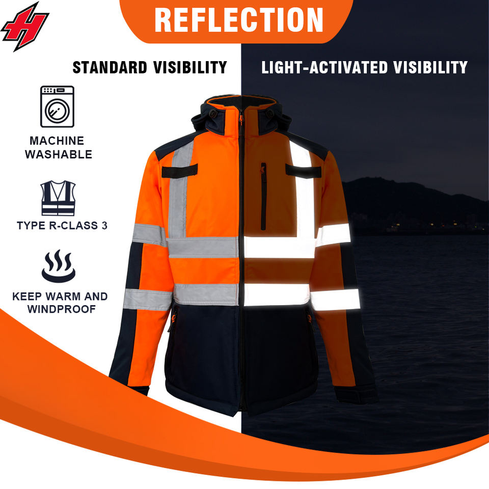 Chaquetas Softshell personalizadas de alta calidad, impermeables, a prueba de viento, poliéster duradero, bolsillos multifuncionales reflectantes para uniformes
