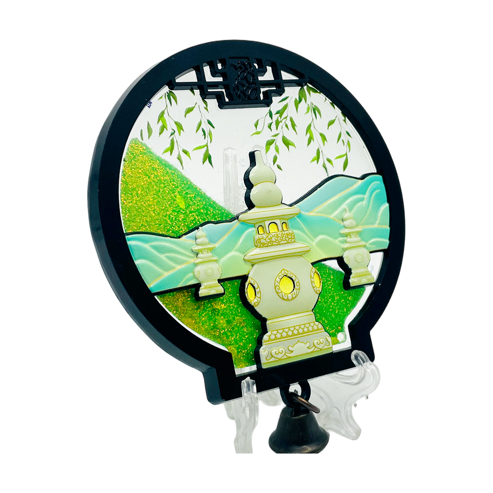 Imán de nevera metálico personalizado del Lago Oeste con las Tres Piscinas que reflejan la luna, pagoda giratoria y arena brillante
