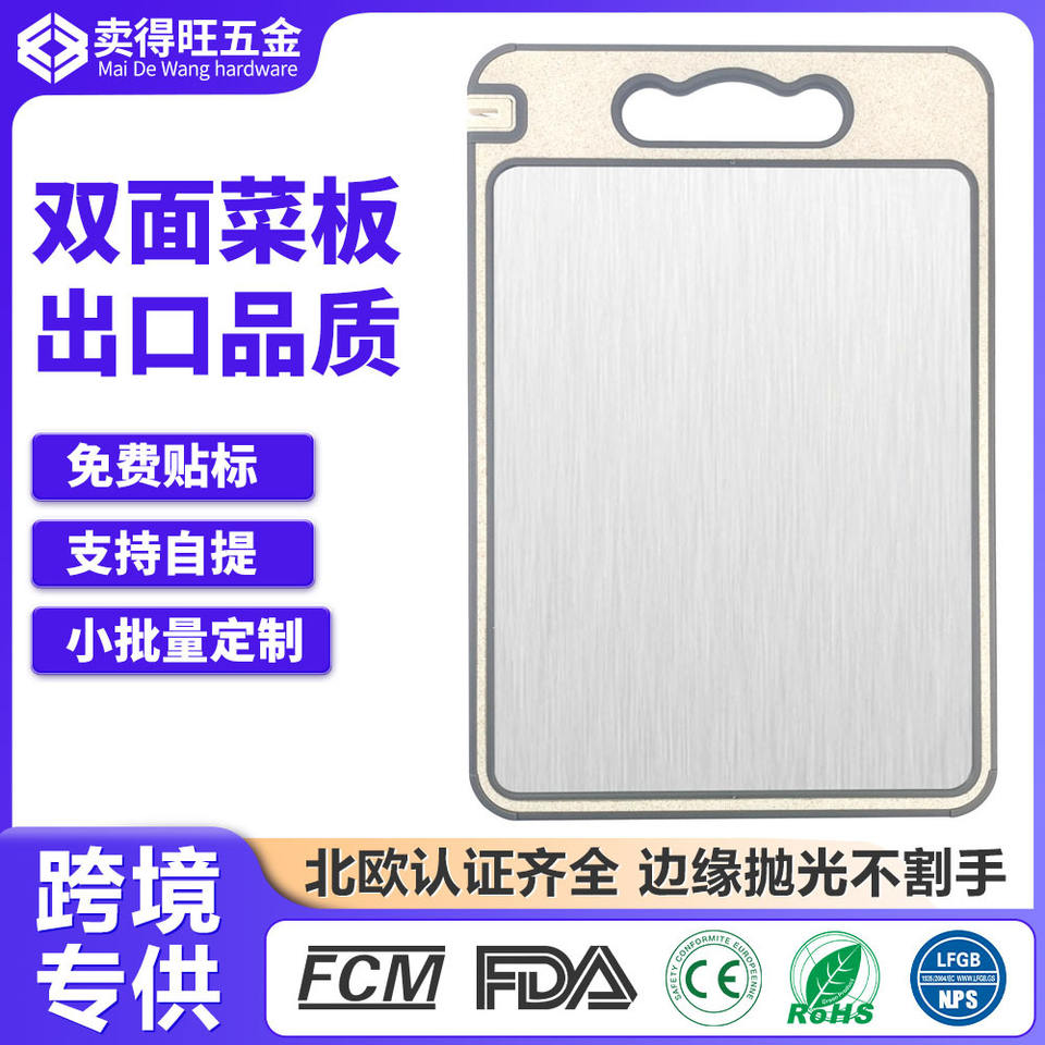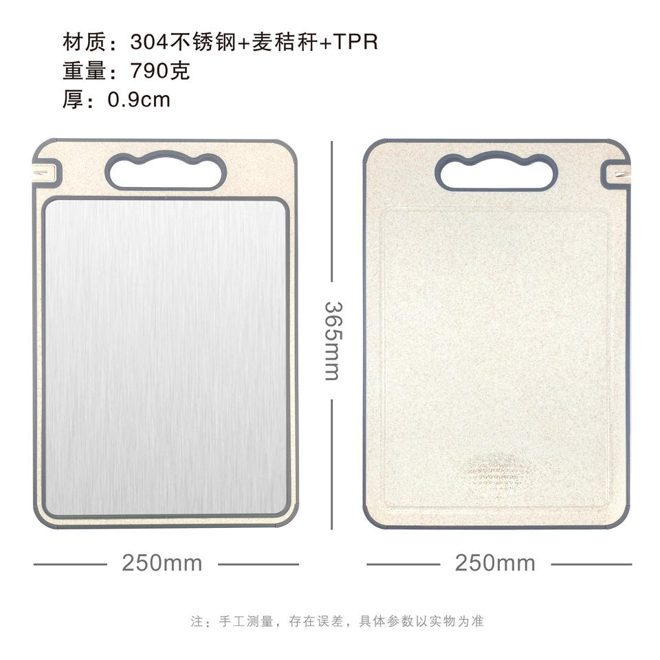 Tabla de Cortar Personalizada de Paja de Trigo de Doble Cara con Acero Inoxidable 250X365mm Antibacteriana y Antimoho