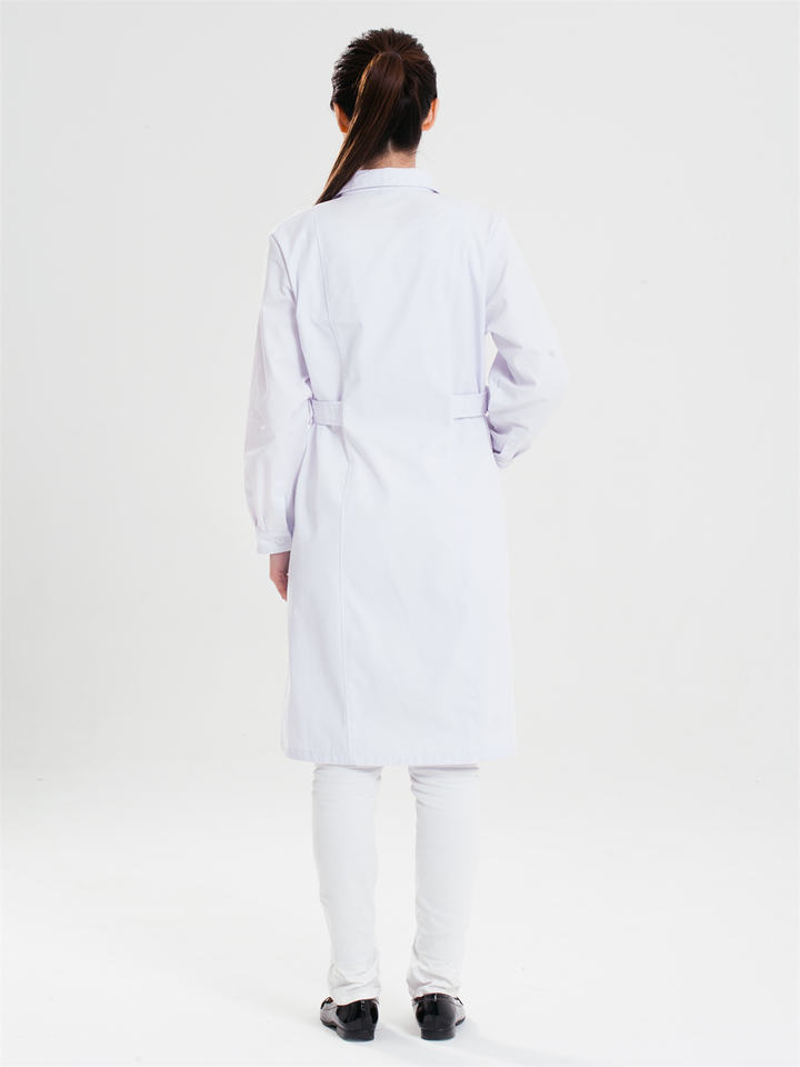 Bata personalizada de manga larga de algodón y poliéster blanco, bata de laboratorio de ropa de farmacia