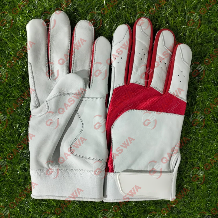 Guantes de bateo de béisbol y softbol de cuero de Color blanco y rojo personalizados Guantes de entrenamiento de juego de béisbol profesional