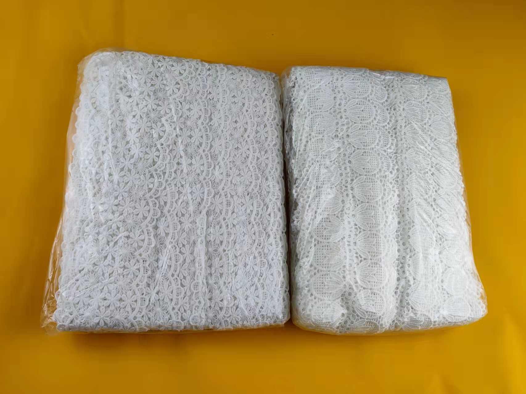 Personalizado al por mayor 43cm ancho cinta guipur recorte bordado algodón blanco guipur encaje ajuste