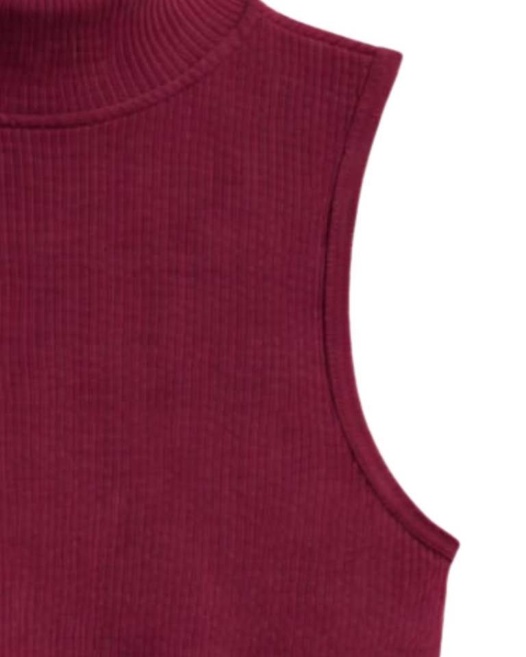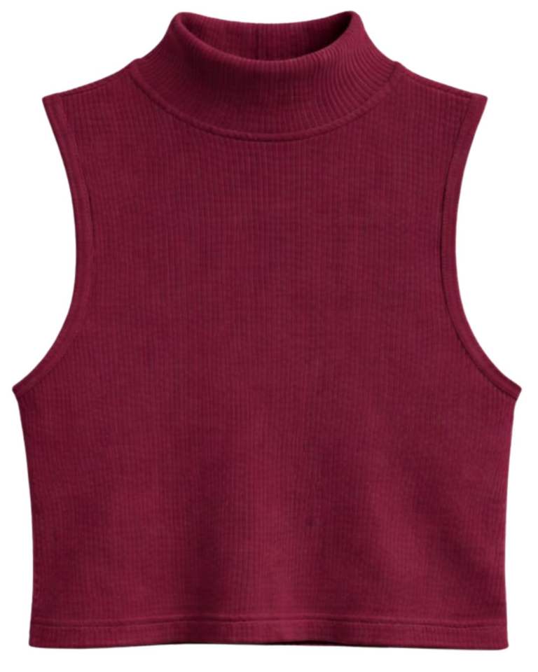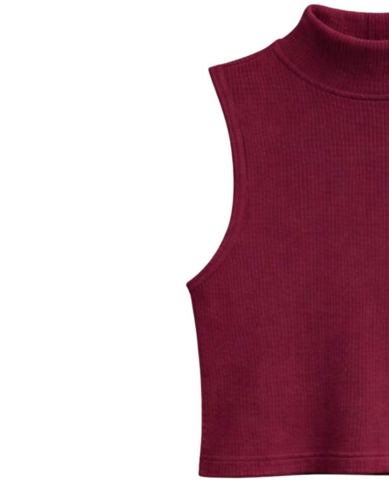 Top corto sin mangas de cuello alto acanalado rojo vino personalizado, ajustado, elástico, informal, de verano, para mujer, chaleco de moda