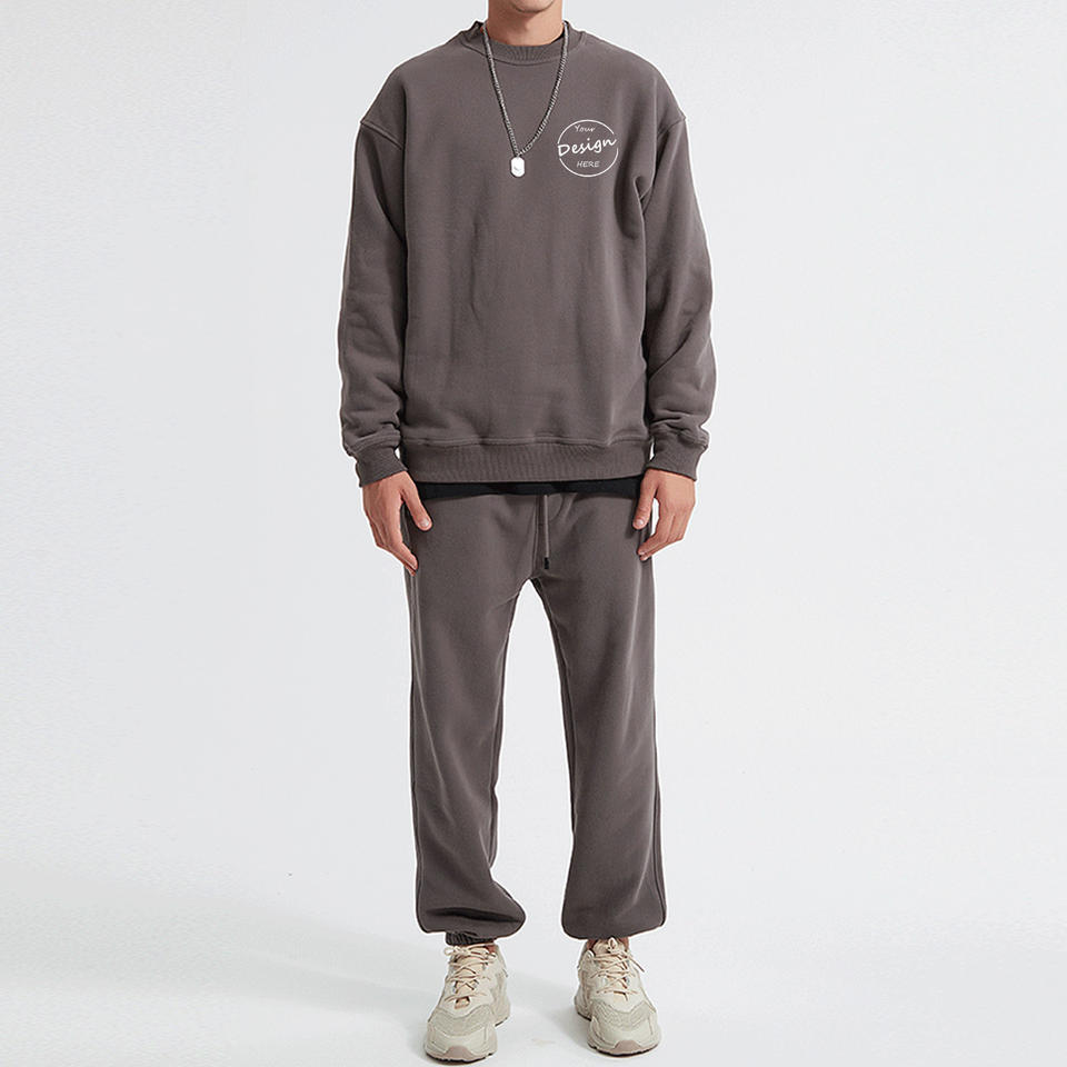 Sudadera de lana de invierno de peso pesado de alta calidad, conjunto de pantalones de chándal, pantalones con capucha de cuello redondo informales sueltos personalizados, pantalones holgados estampados