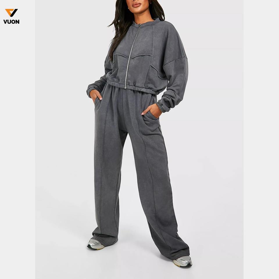 Nombre del producto:Venta caliente de las mujeres de alta calidad Zip Up Gym Vintage Wash Jogging Suit