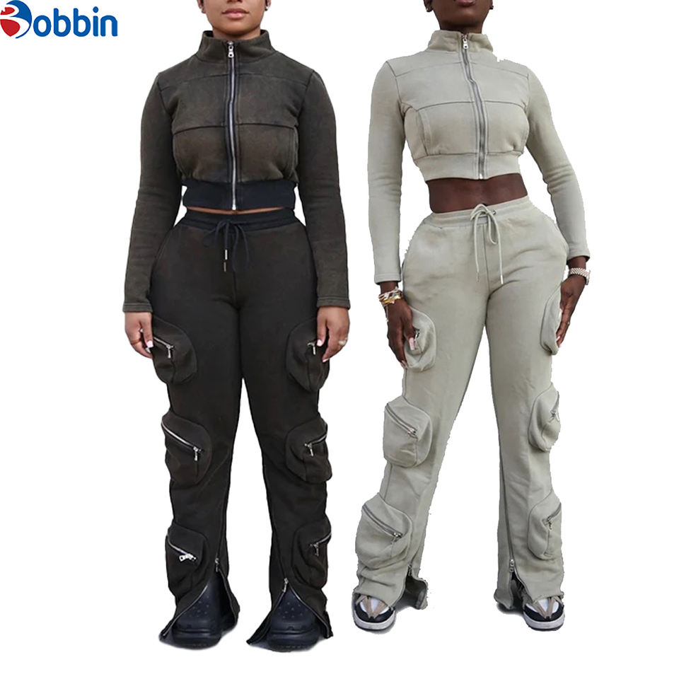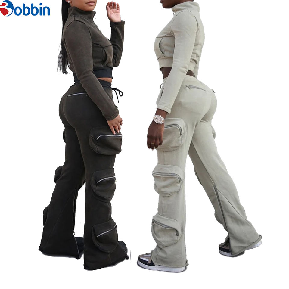 Conjunto Deportivo de Invierno Personalizado para Mujer, Sudadera con Capucha, Pantalones Cargo con Bolsillos Laterales, Cierre de Cremallera en el Bajo, Talla Grande, Transpirable y Ecológico