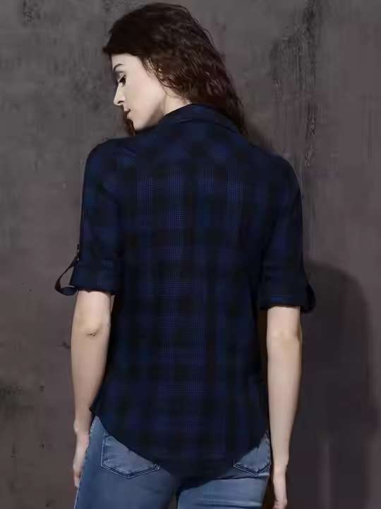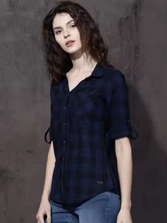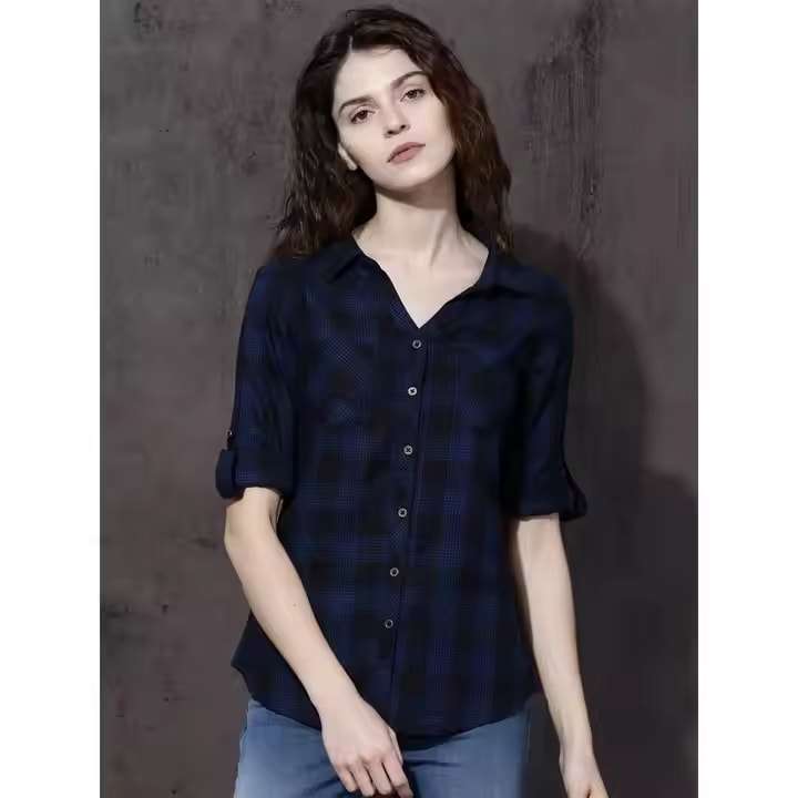 Camisa a cuadros de algodón con cuello abotonado para mujer personalizada con estampado de manga larga y posición de logotipo frontal de tela Oxford