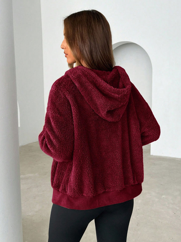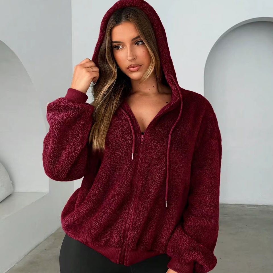 Sudadera con capucha de lana de color sólido personalizada para mujer, sudadera de lana gruesa y cálida para damas