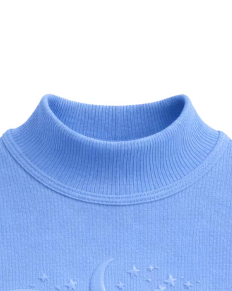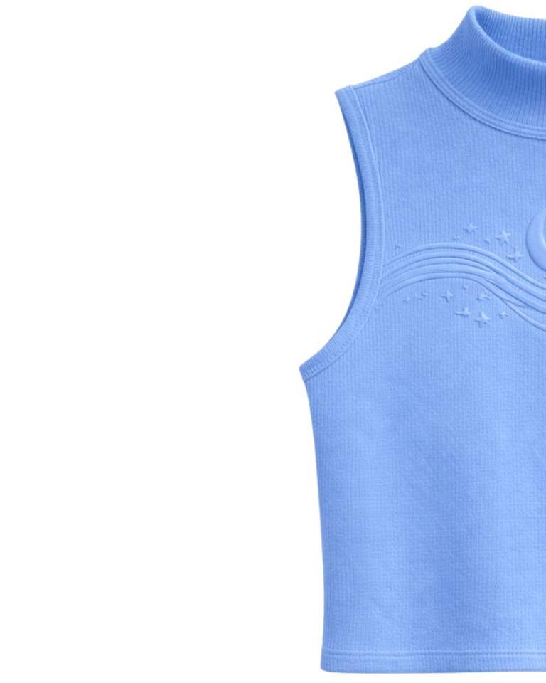 Camiseta sin mangas de cuello alto acanalada azul cielo para mujer, personalizada con diseño de luna en relieve, sin mangas, de verano, fabricante personalizado